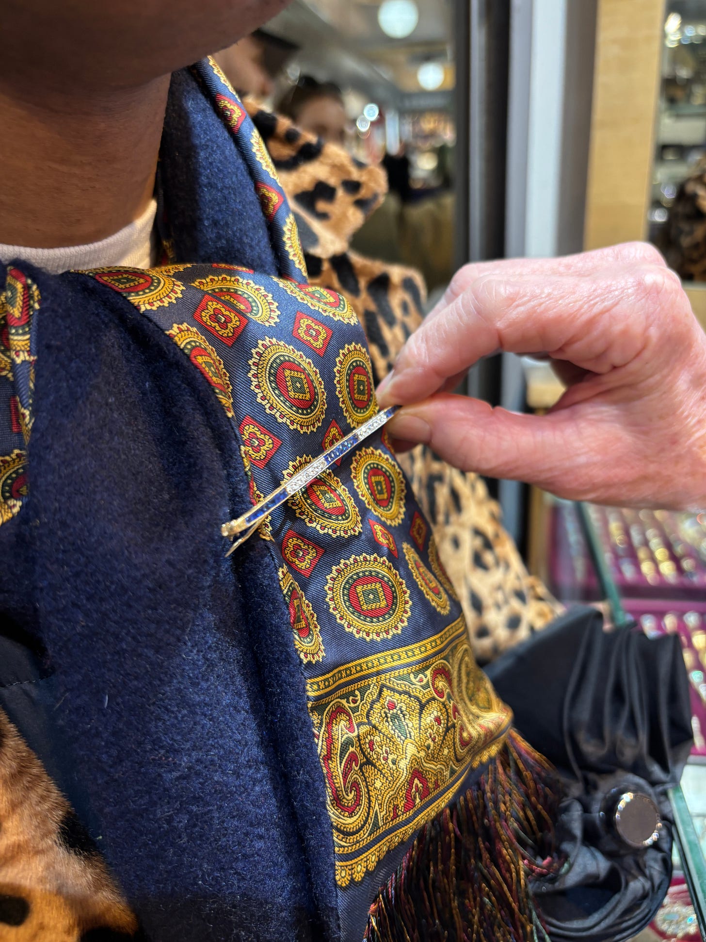 Beyond Adret, I’m hoping to pop into the expected haunts: Harrods, Selfridges, Dover Street Market, and James Smith & Sons for another umbrella because when in London. But what I was most adamant about was finding an antique jewelry store or market to hunt for a Victorian or Art Deco brooch. I only brought a carry-on, so my clothing options are a tad limited. There will be some repeating, which I don’t mind, but jewelry is the easiest way to make things feel new.
