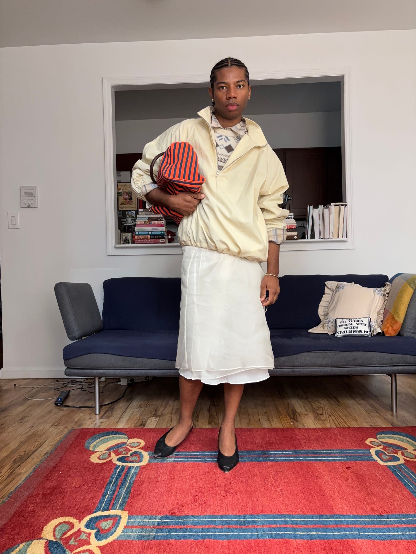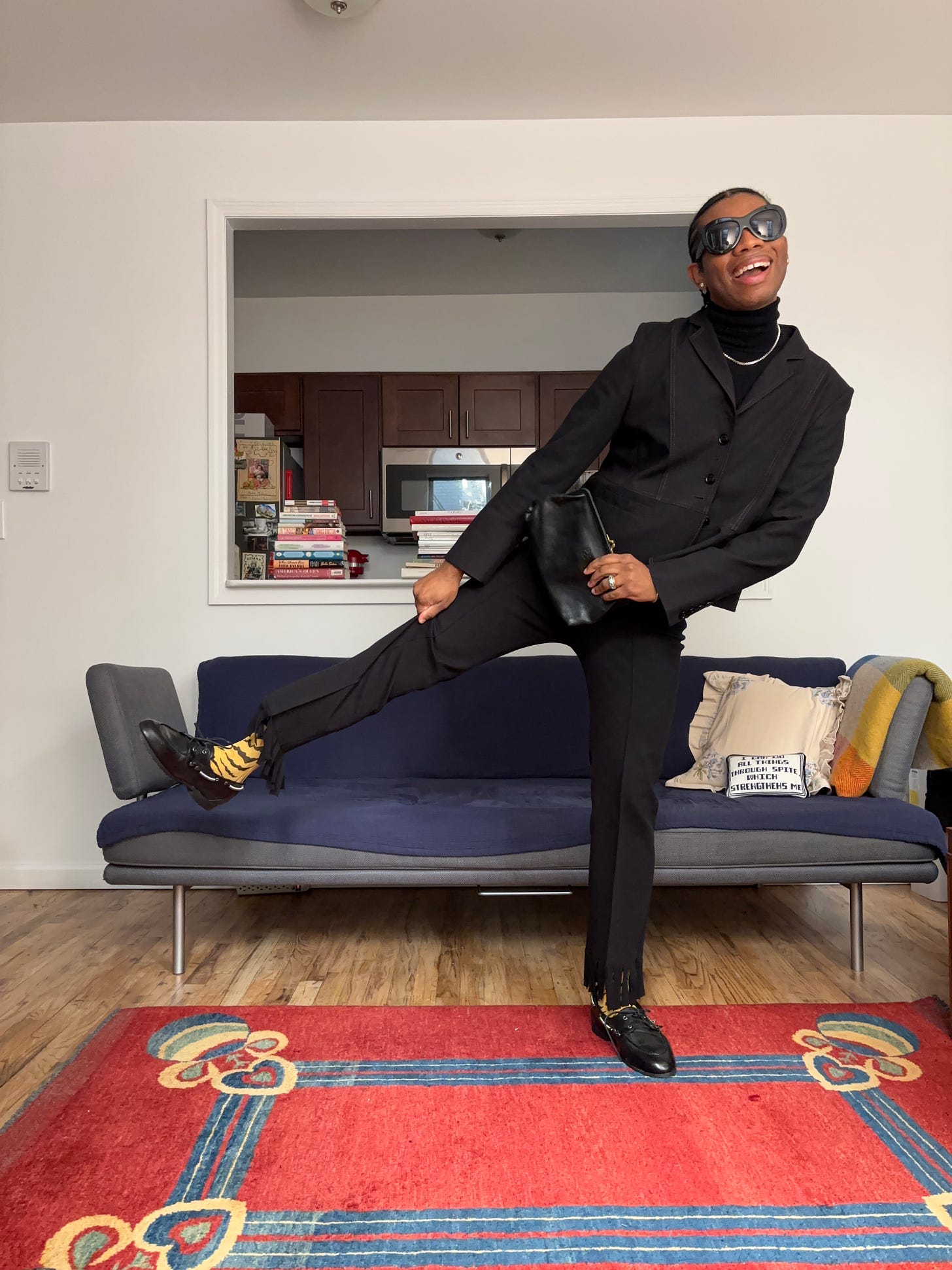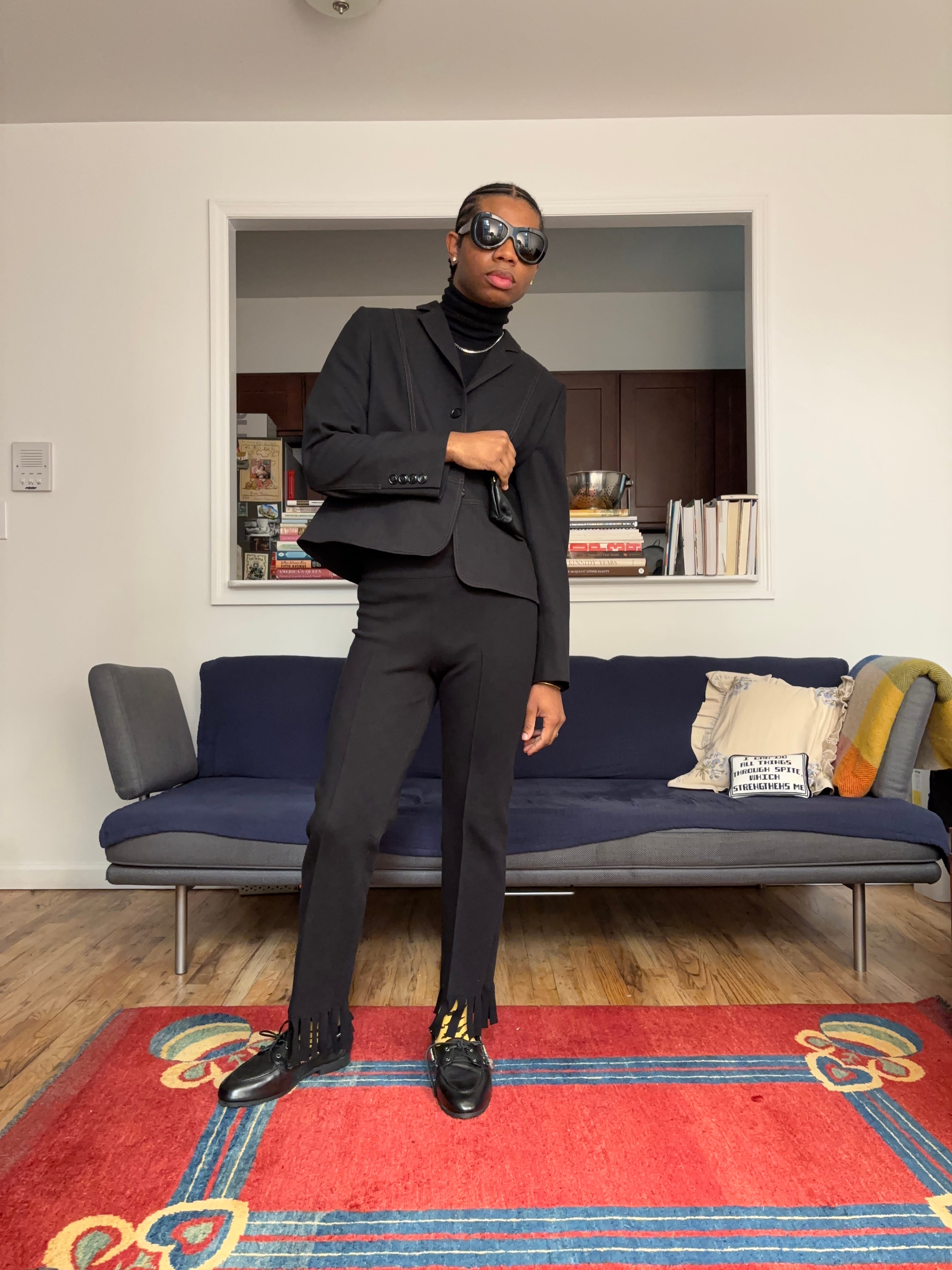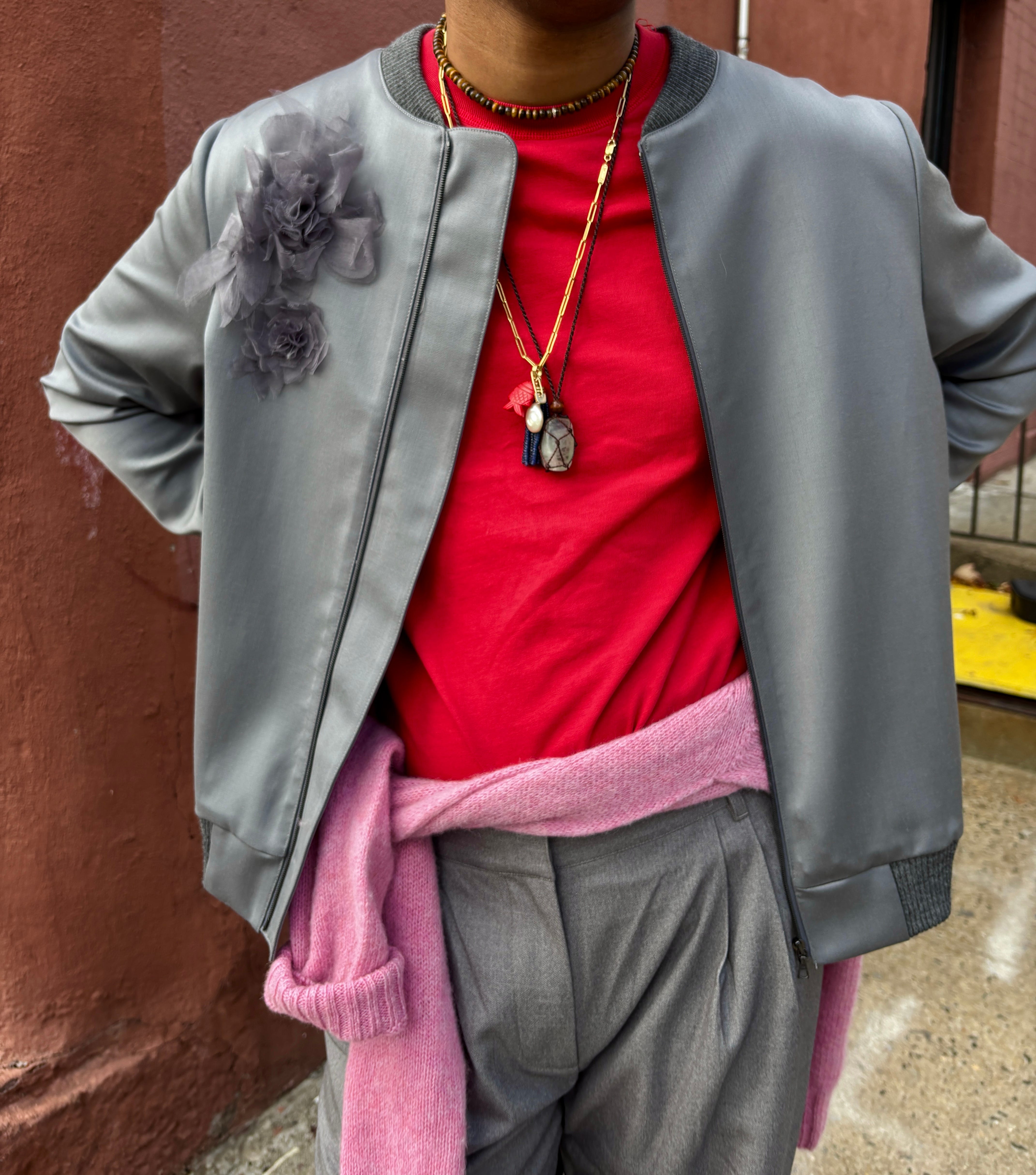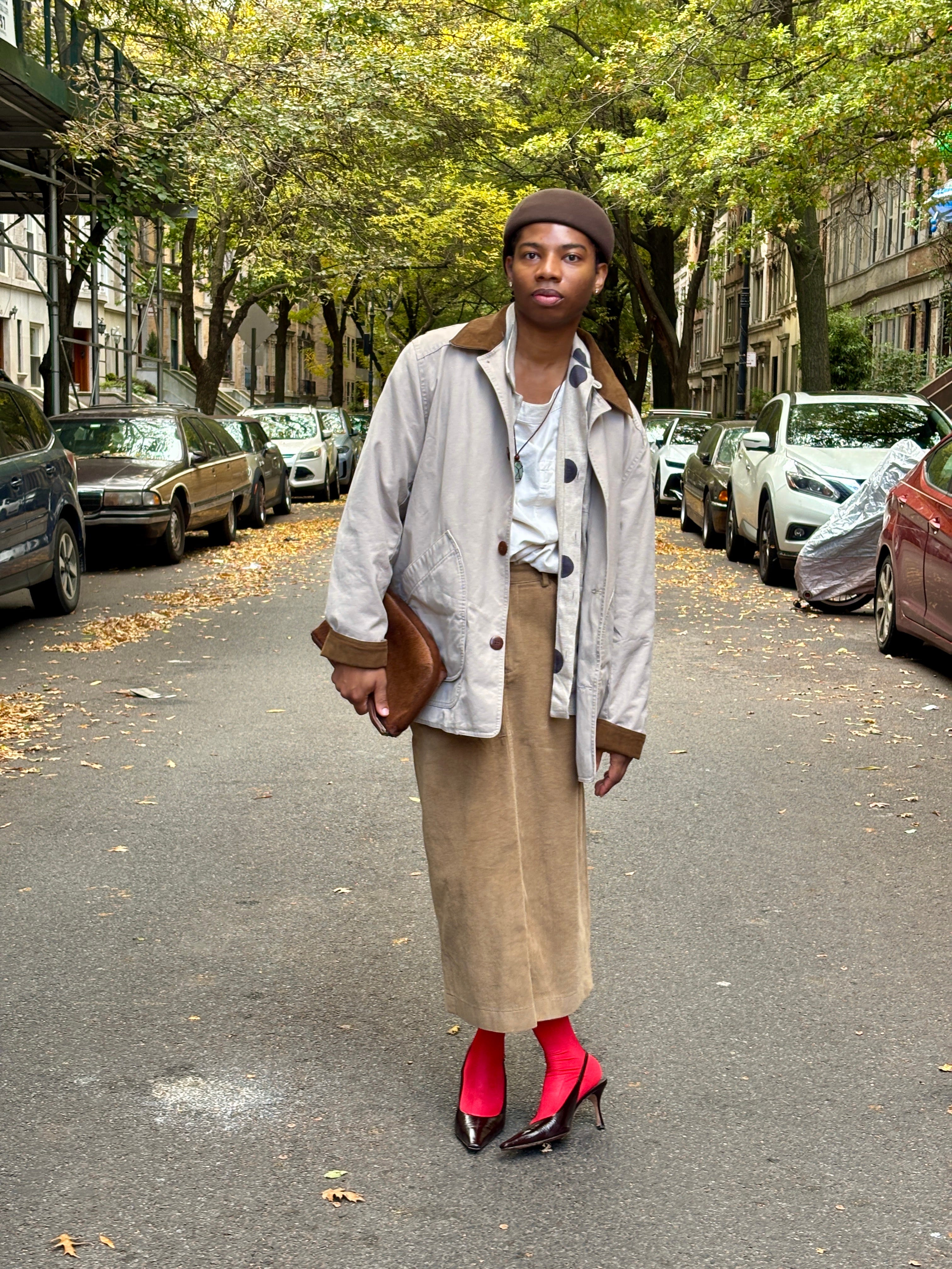 A few newsletters ago, I wrote about my thought process when getting dressed and how pieces often fall into one of two roles: lead actors and supporting actors. Just like in any great film or play, every role matters. The lead actors in your outfit are the pieces that command attention, while the supporting ones may not be essential but still elevate the overall look. Without them, an outfit can feel flat. These categories aren’t fixed, of course, there’s room to interpret them however you like. When it comes to supporting actor pops of color, think about details like colorful or patterned socks and tights, or in some cases jewelry (Every day I wear this blue enamel ring from Selim Mouzannar, even when it doesn’t necessarily go with the rest of my outfit. At this point, I feel naked without it.). They’re small touches that might seem optional, but their presence adds personality and depth.
