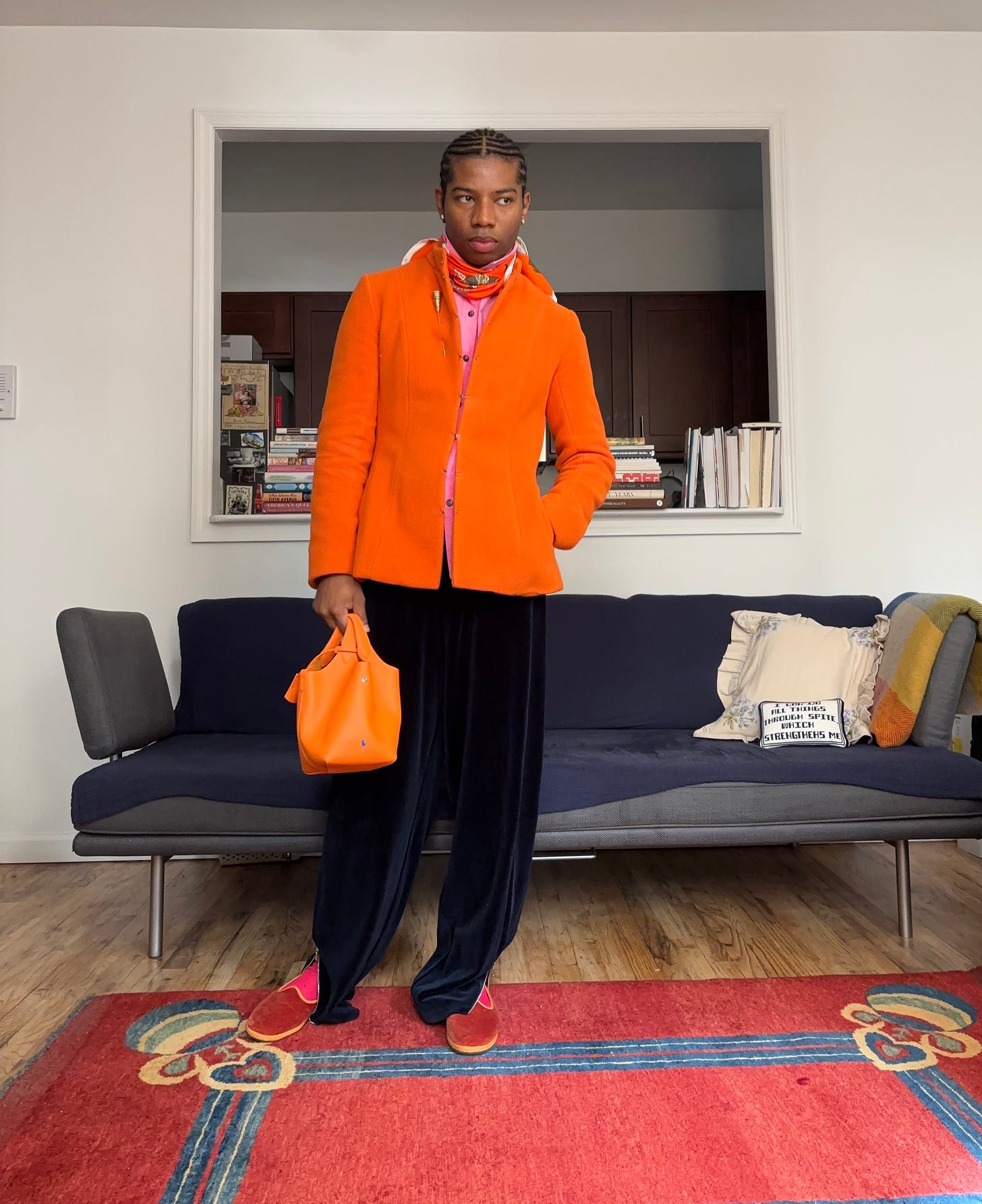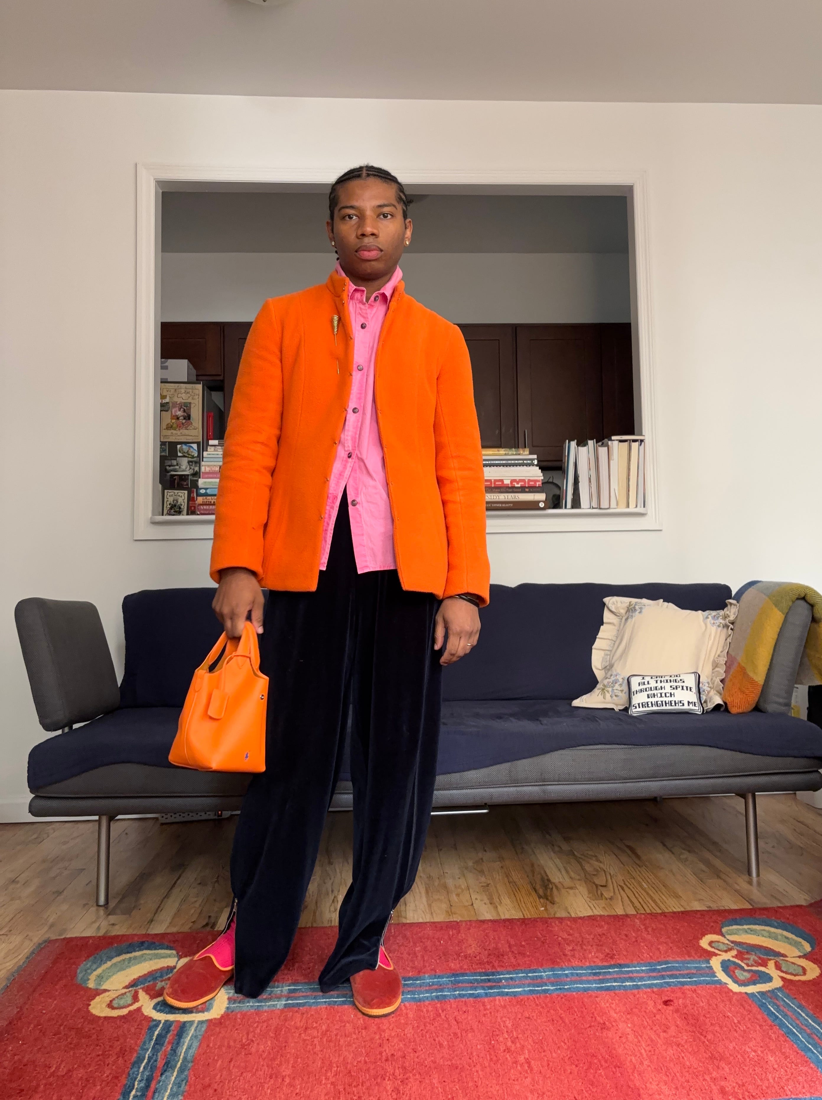 One color combination that feels unexpectedly right to me at the moment is pink, orange, and navy. Pink softens the otherwise formal nature of navy, orange adds a jolt of optimism, and navy grounds the whole thing so it never feels too precious. It’s refined but still playful. And during the holidays, when everything leans metallic or leans into the predictable red and green, this trio stands out beautifully, vibrant without being too on the nose.