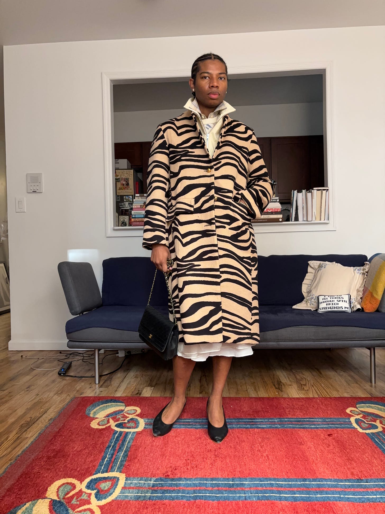 For me, the non-committal additions usually revolve around accessories. These are the pieces you throw on for the morning commute but have the option to ditch once you reach the office or that breakfast meeting. Maybe the print or color felt right when you were still half asleep, but by the time you’ve had coffee, you realize it might be too much. This could mean a scarf in a vibrant print or saturated hue, a bag that brightens up an otherwise neutral look, or, as we move into colder months, a bold coat that brings an entire outfit to life. The beauty of these pieces is that they don’t require long-term commitment. You know at some point in the day, the coat comes off, or the scarf gets tucked away, so the burst of color feels more playful than permanent.