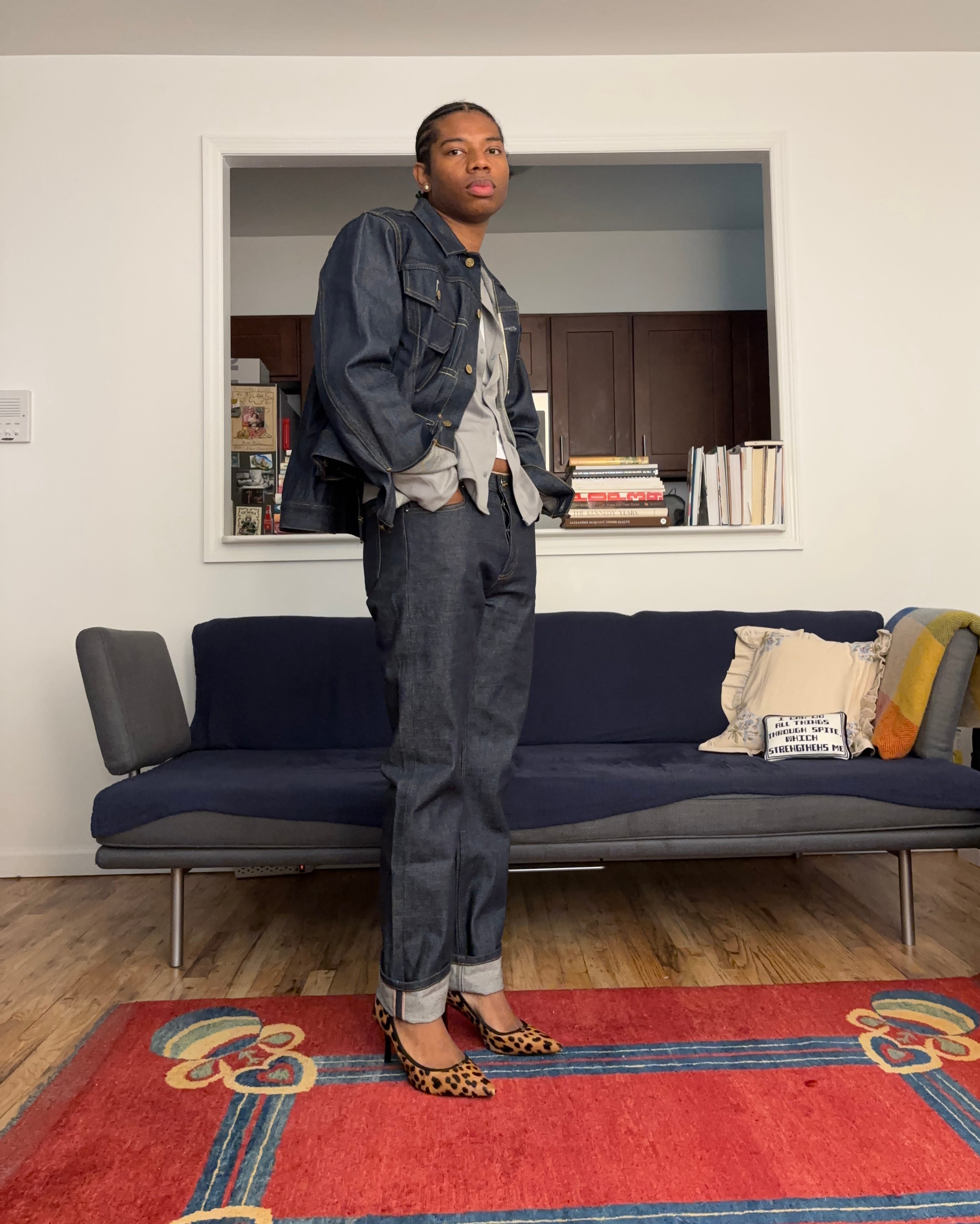 I tend to think of shoes as natural lead actors that can step back and play a supporting role when needed. In an all-denim outfit or a mostly monochromatic look, a statement shoe is an easy way to introduce color or print without feeling overpowered. It’s a small but deliberate move that changes the entire tone of what you’re wearing.